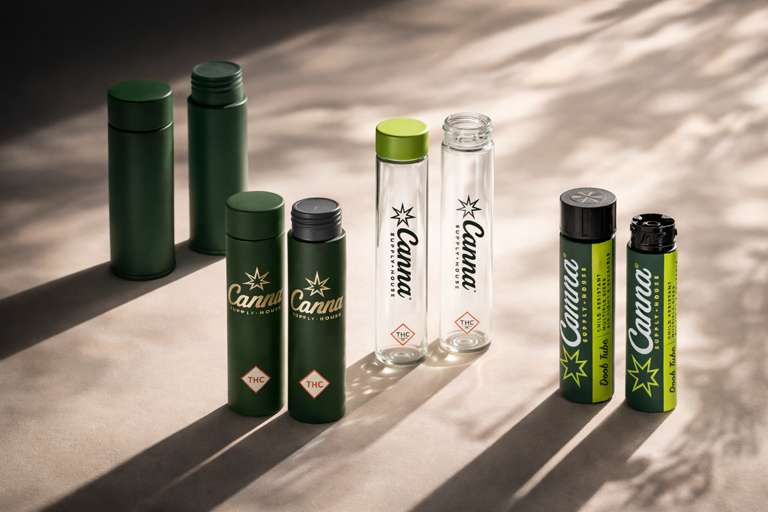 Canna Supply House® offers fully custom child-resistant solutions from Doob Tubes and jars to multi-pack boxes and premium tins, all built for aroma control, compliance, and crush protection with fast turnaround and competitive pricing.