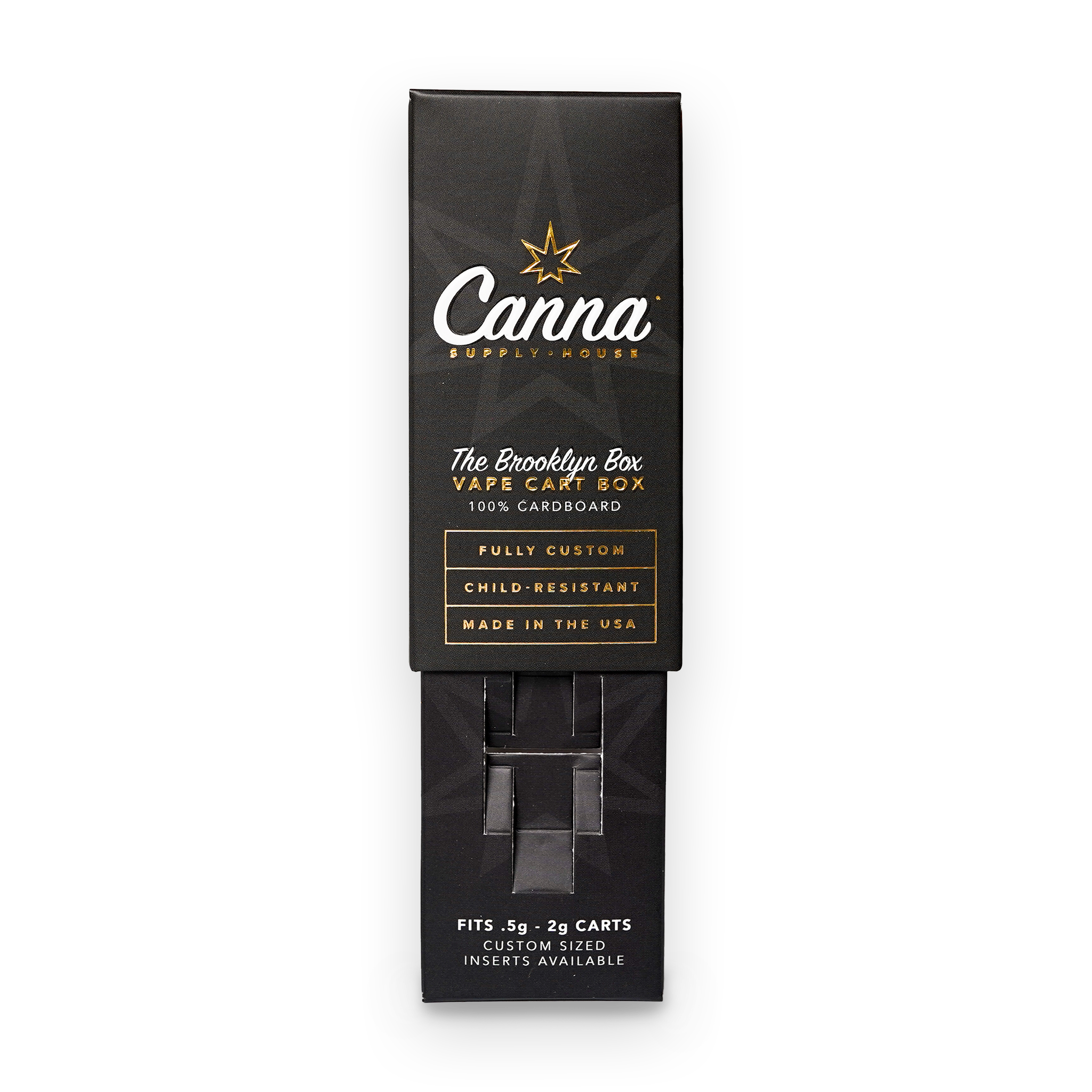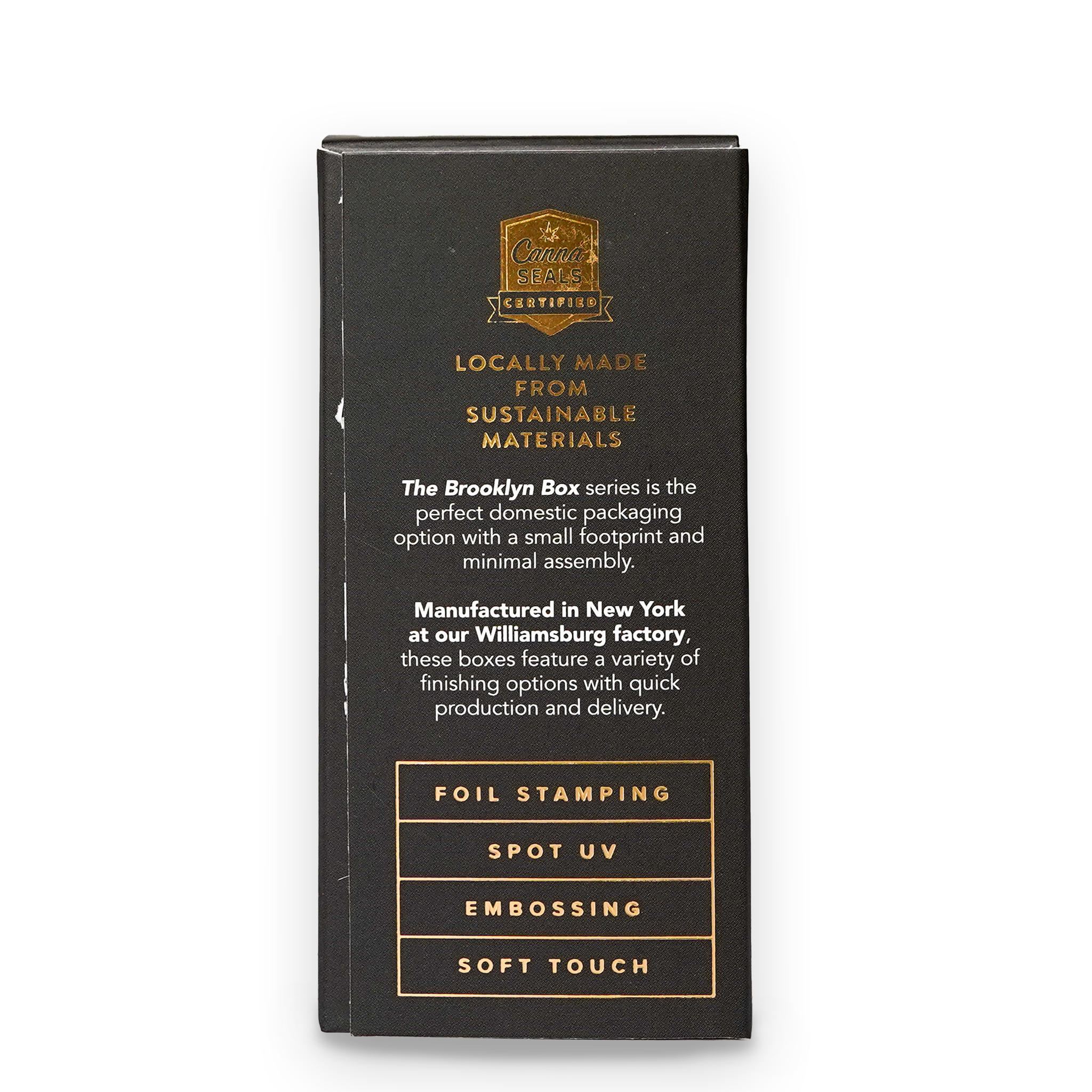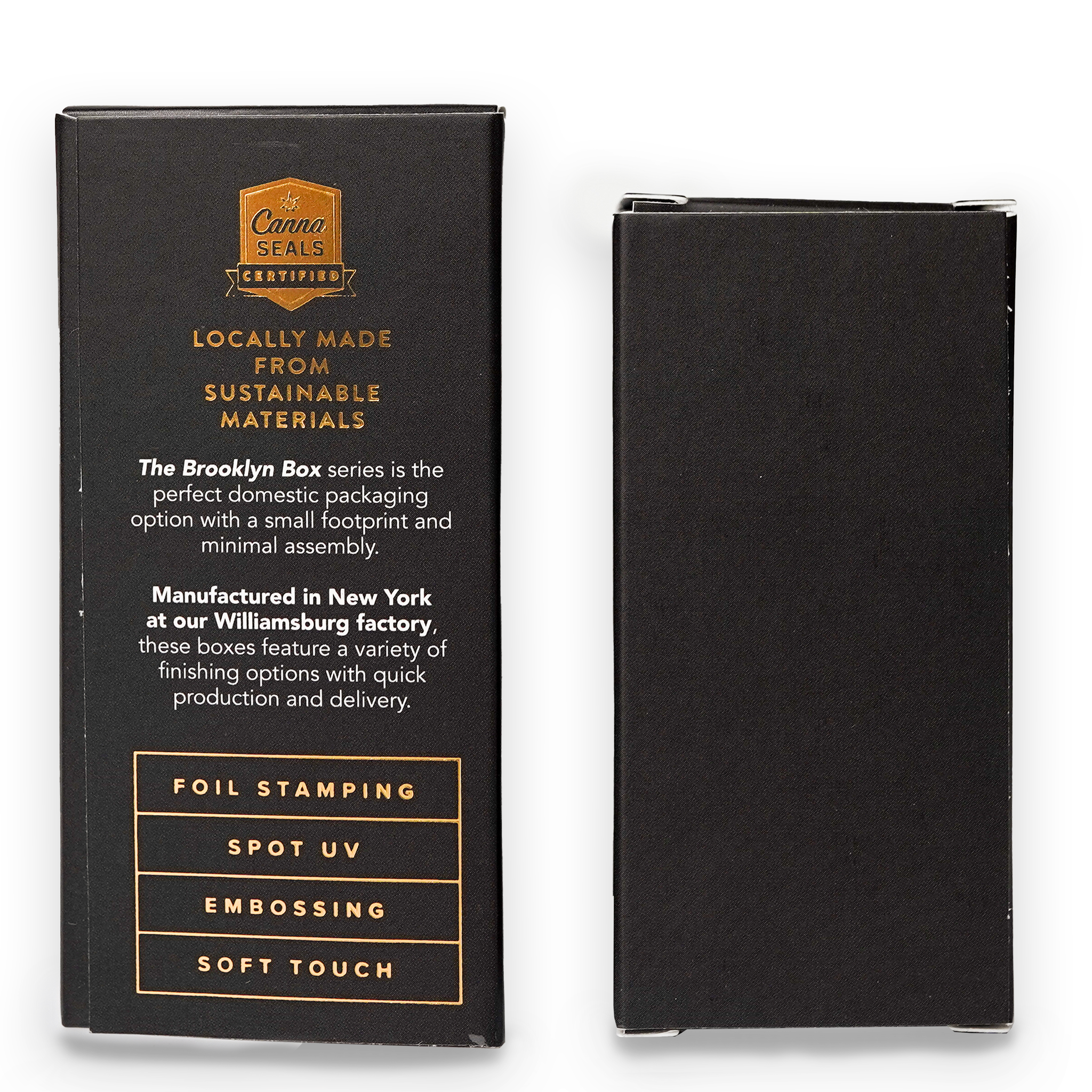 The Brooklyn Box™ Vape Cart Box is a sleek, high-quality packaging solution designed for durability, security, and brand customization for vape cartridges. Featuring the Certified CannaSeals Child-Resistant Lock with Keyhole Technology, it ensures compliance while keeping products secure and fresh. Fully customizable with logos, colors, and artwork, this compact yet durable box enhances product presentation.